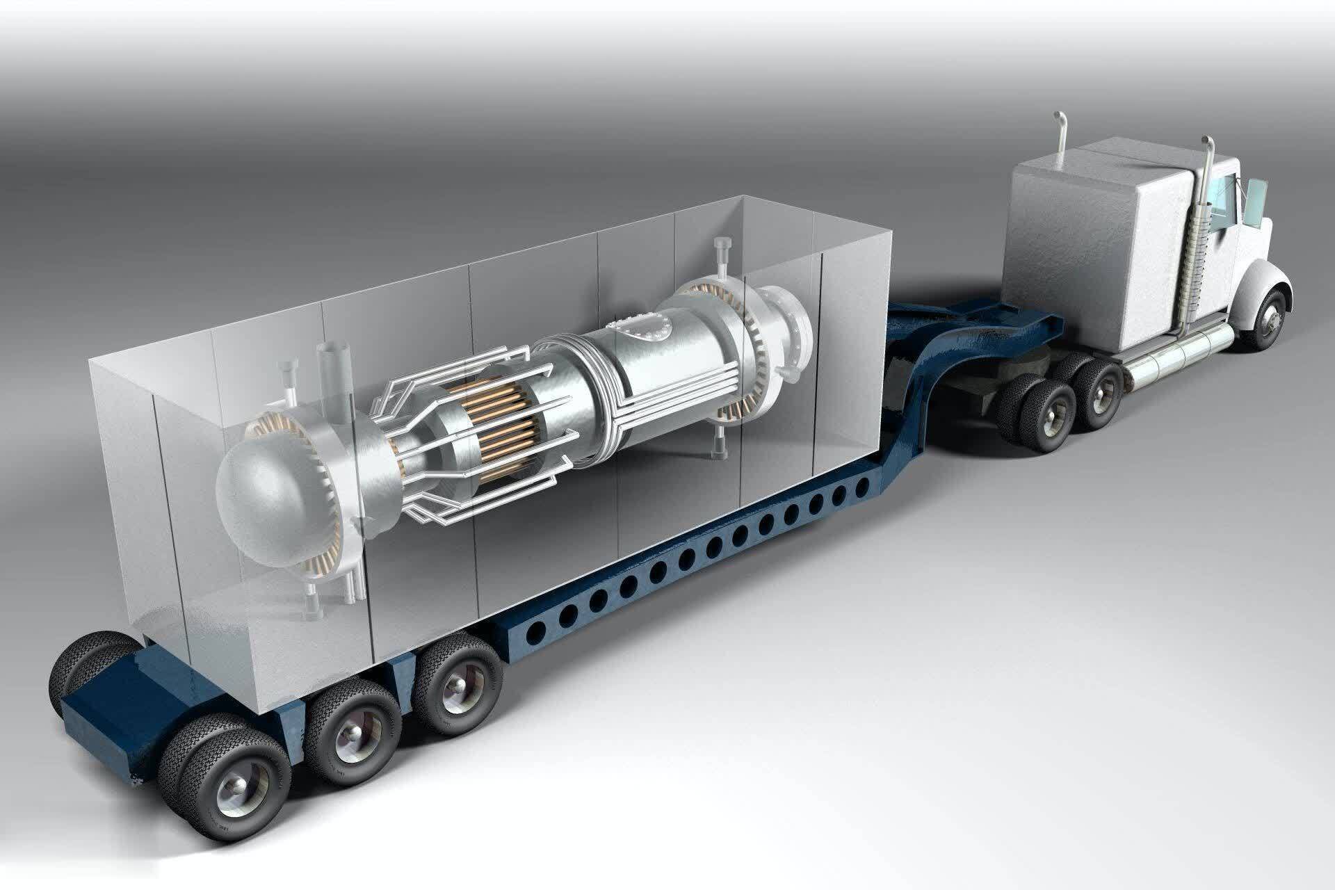微型反应器的插图,该反应器足够紧凑,可以用卡车运输。