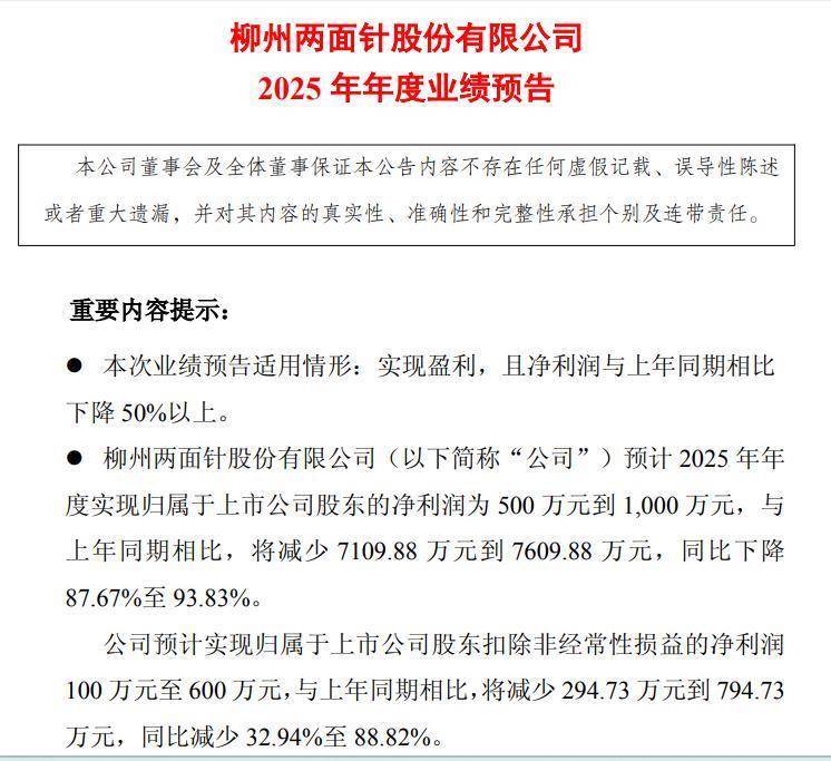 1月28日晚间免费配资炒股网站,有“牙膏第一股”之称的两面针(600249)披露2025年年度业绩预告,公司预计2025年年度实现归属于上市公司股东的净利润为500万元到1,000万元,与上年同期相比,将减少7109.88万元到7609.88万元,同比下降87.67%至93.83%。