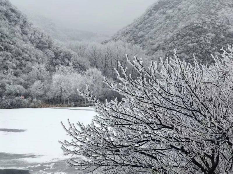 流村镇位于昌平区西部,地处太行山脉与燕山余脉交会处,地势西高东低。凭借高海拔地形与独特的气候条件,这里成为北京市冬季观赏雾凇的绝佳去处。其中,溜石港村地处昌平最西端,群山环抱,风光秀美,游客可登临梯田木栈道,俯瞰层叠雪景,感受雪落梯田的诗意画卷。古村长峪城村同样值得一访,该村位于昌平西北海拔约800米的高山洼地,素有“昌平小西藏”之誉,是“北京边关三城”之一。雪后初霁,村内永兴寺、民屋、古树等披上银装,古韵悠然,别具风情。