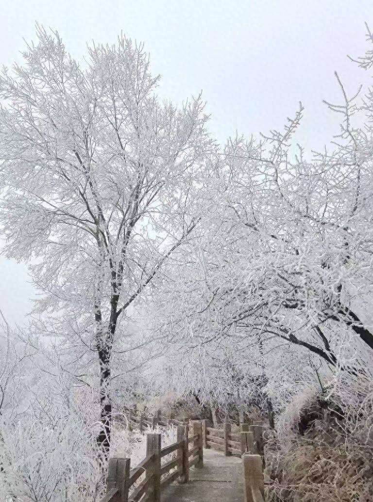 雾凇的形成是凝华现象的典型呈现。低温环境下,空气中低于0℃的过冷却水滴,接触树枝、草木等低温物体后,瞬间由气态直接凝华为固态冰晶,在水汽持续补给下不断堆积,最终形成宛若玉树琼枝的冬日奇观。这一景象可遇不可求,需冷空气、充沛水汽、静稳微风与特定地形的完美叠加。