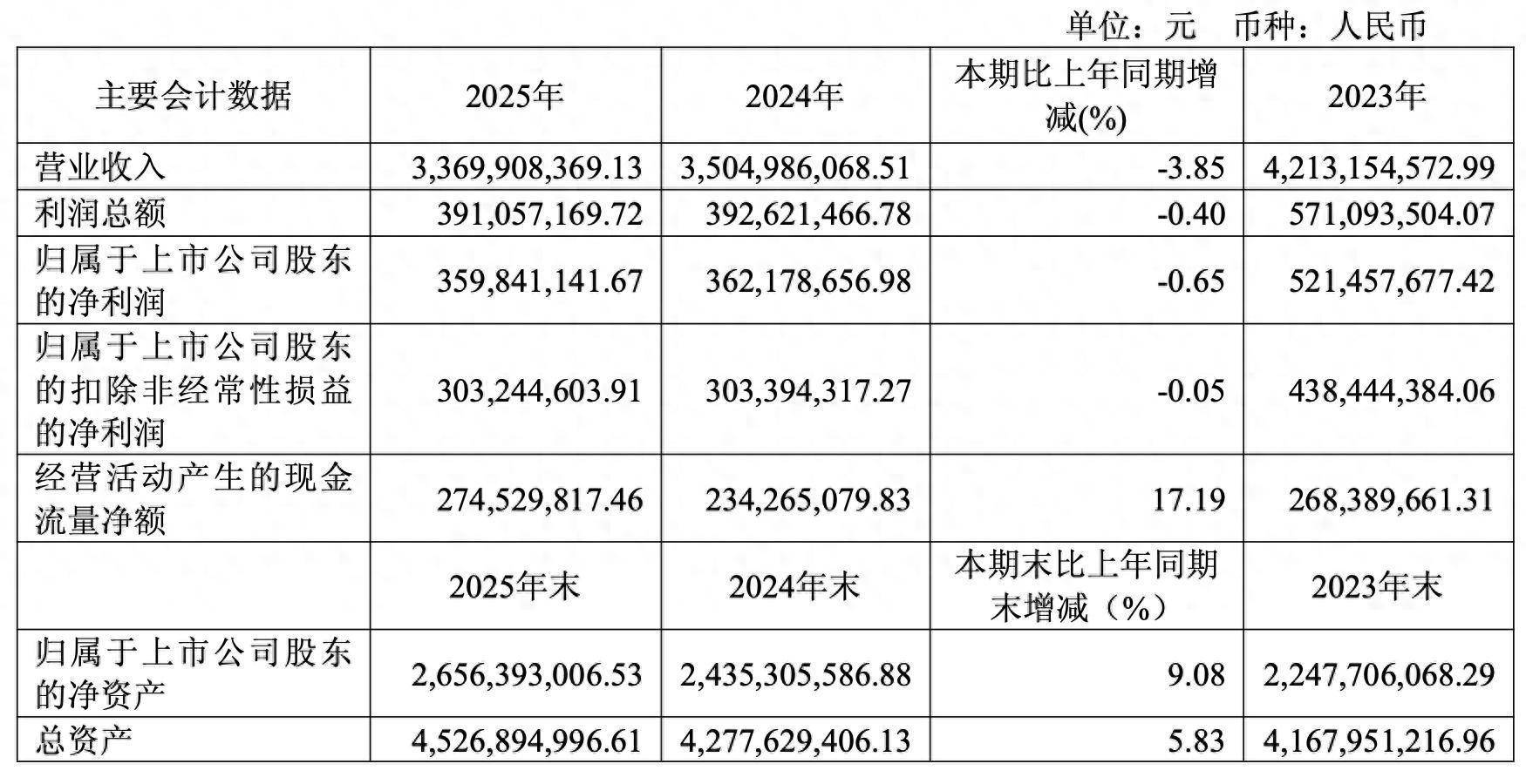 回溯2024年,公司实现营业总收入35.05亿元,同比下降16.81%;归母净利润3.62亿元,同比下降30.54%;扣非净利润3.03亿元,同比下降30.80%。