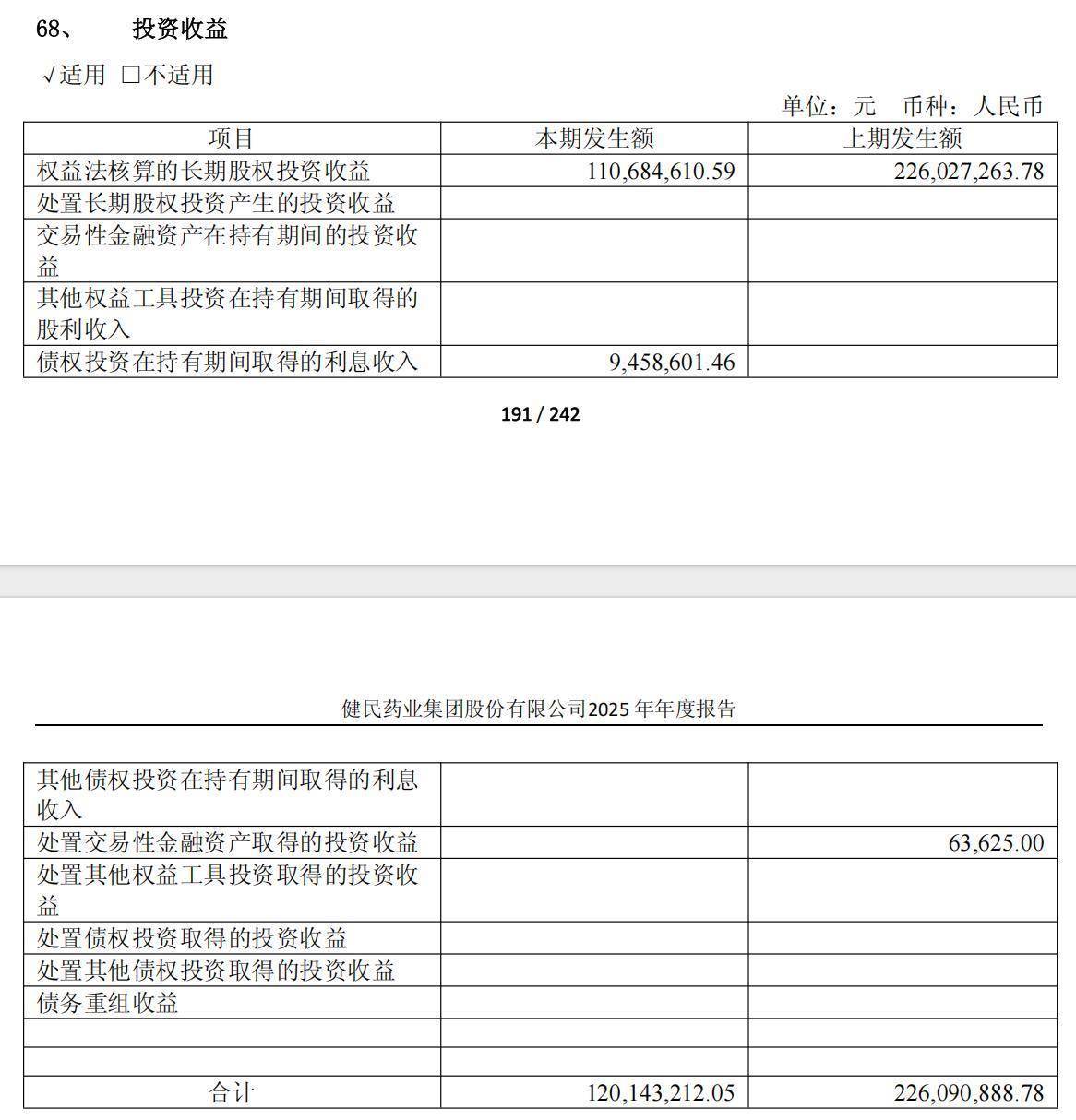 值得一提的是,2024年,健民集团的投资收益为2.26亿元,2025年只有1.20亿元,近乎砍半。