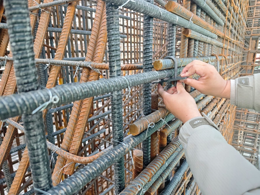 为从源头破解这一安全瓶颈,项目团队创新性地采用玻璃纤维增强筋(GFRP筋)替代传统钢筋,与沉井主体结构一次性浇筑,形成一道既坚固又可切削的特殊洞门。这种新型材料抗拉强度高,又能被盾构机刀盘直接磨削,从而告别了高风险的人工凿除工序,施工效率与安全性大大提升。