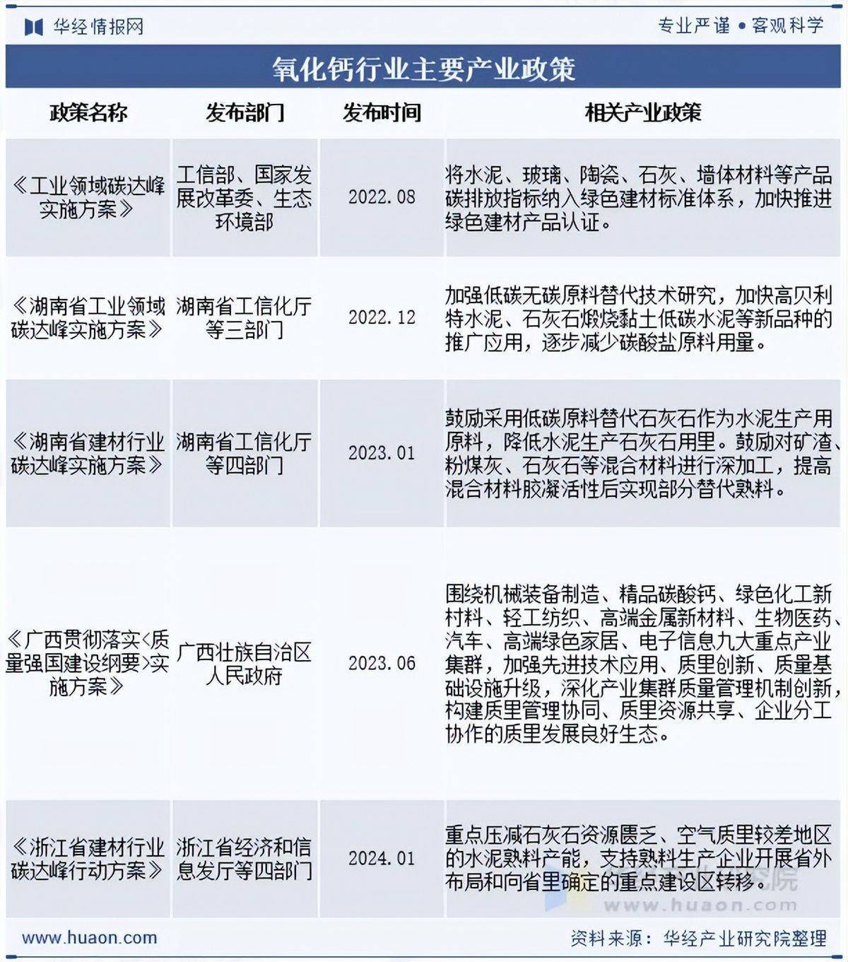 本文节选自华经产业研究院发布的《2025年中国氧化钙行业分类、政策、产业链及下游分析》,如需获取全文内容,可进入华经情报网搜索查看。