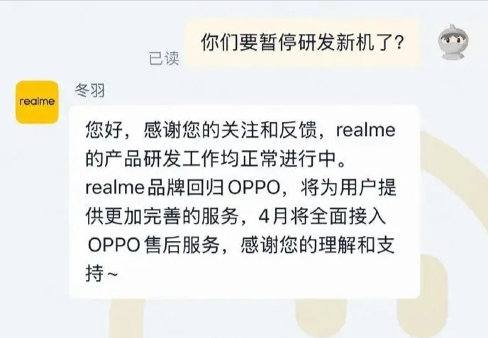 难道, @真我手机 真的与魅族一样将暂停新机研发了吗?针对有关真我疑似暂停2026年新品手机研发的消息,OPPO迅速做出了正面回应。据官方称,该消息不实!目前真我的产品研发工作正在正常进行中。同时,realme的客服也表示,“realme的产品研发工作均正常进行中。”同时realme客服还透露,“4月将全面接入OPPO售后服务”。