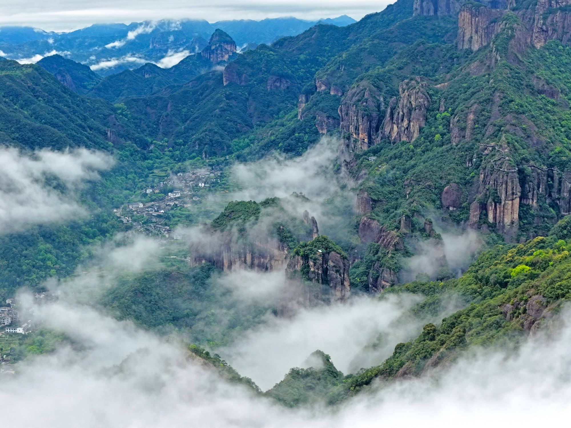 ↑2026年4月12日在浙江省温州市雁荡山方洞景区拍摄的云海景观。(无人机照片)CICPHOTO/段俊利 摄编辑:张雪萌