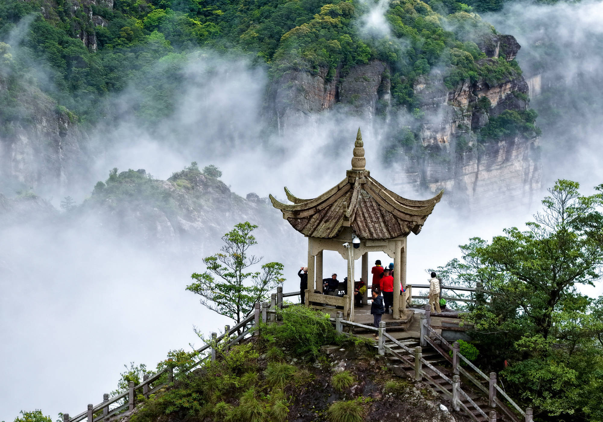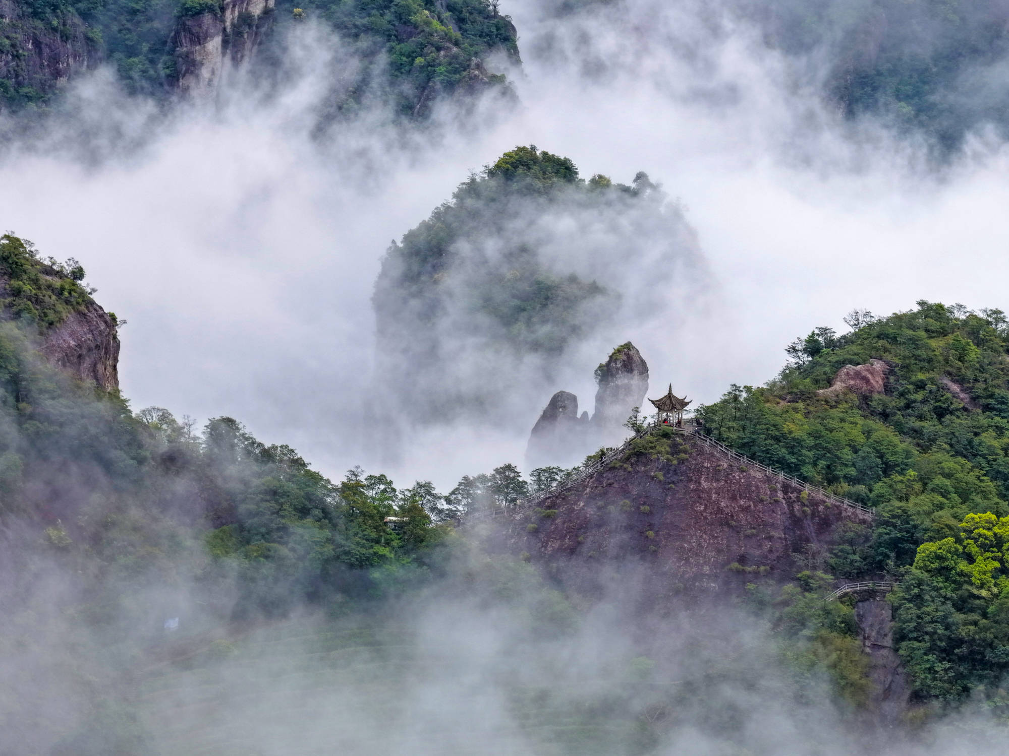 2026年4月12日,浙江省温州市雁荡山方洞景区云海翻腾、峰峦隐现,宛如仙境,吸引游客前来打卡游玩。